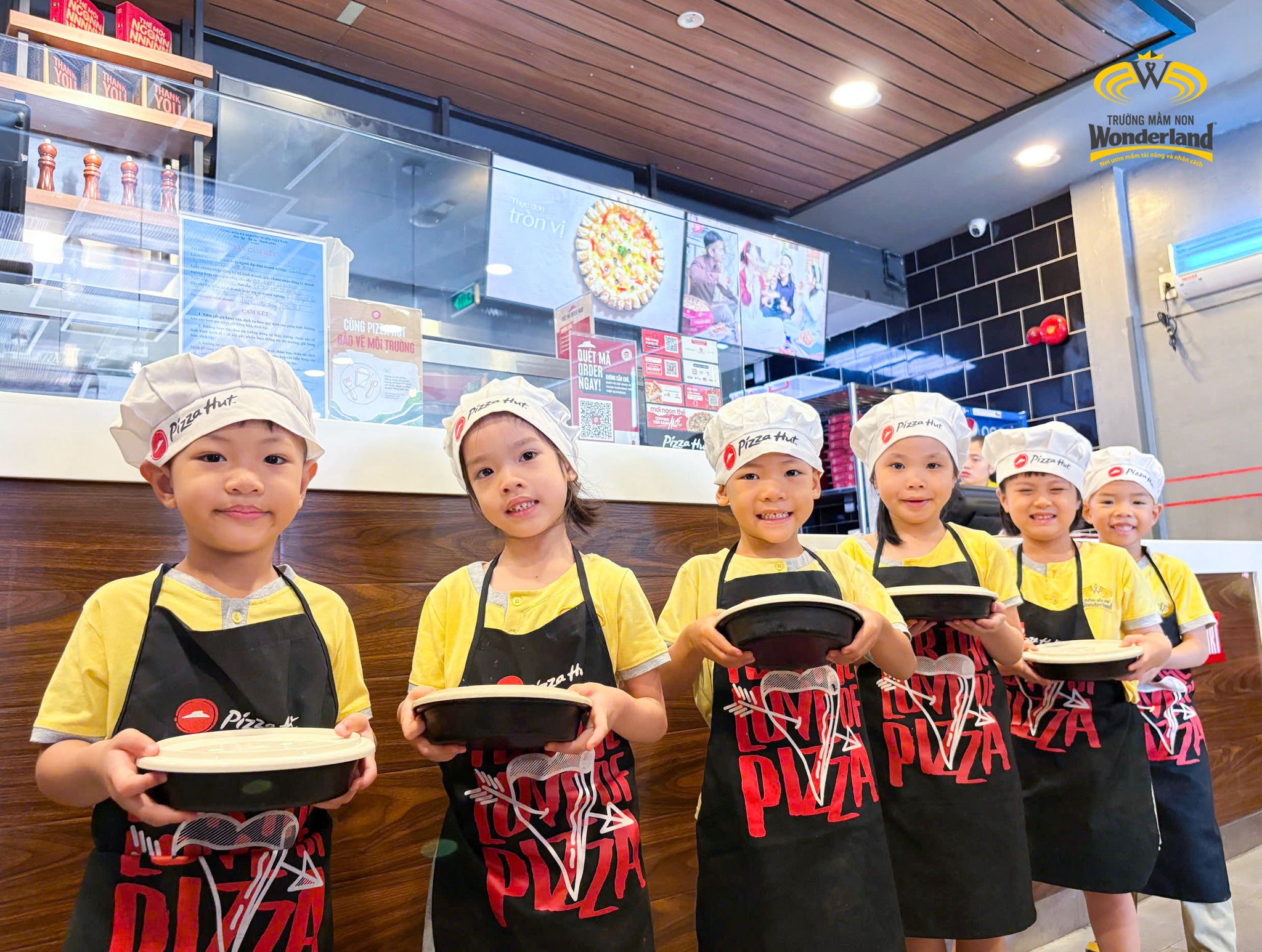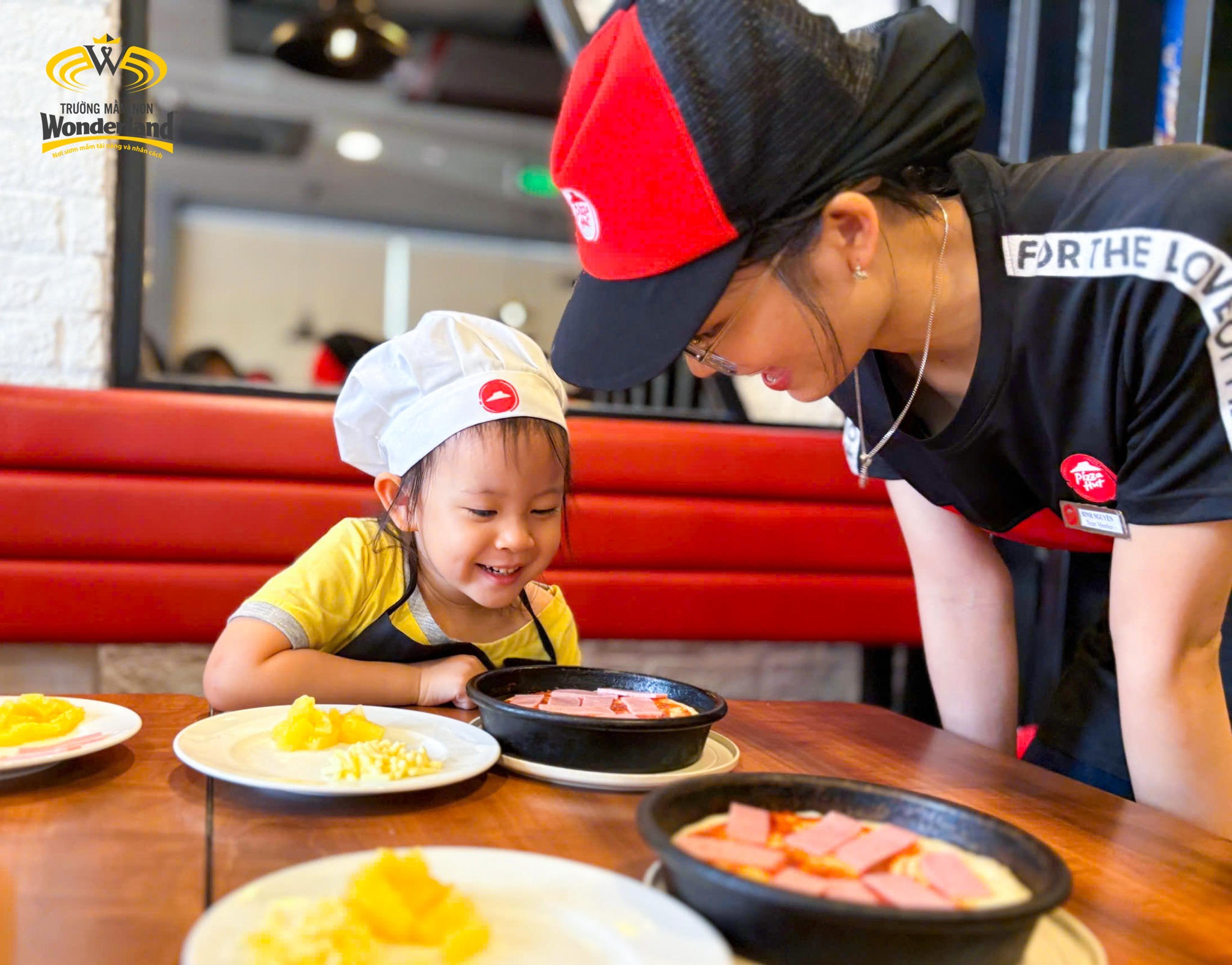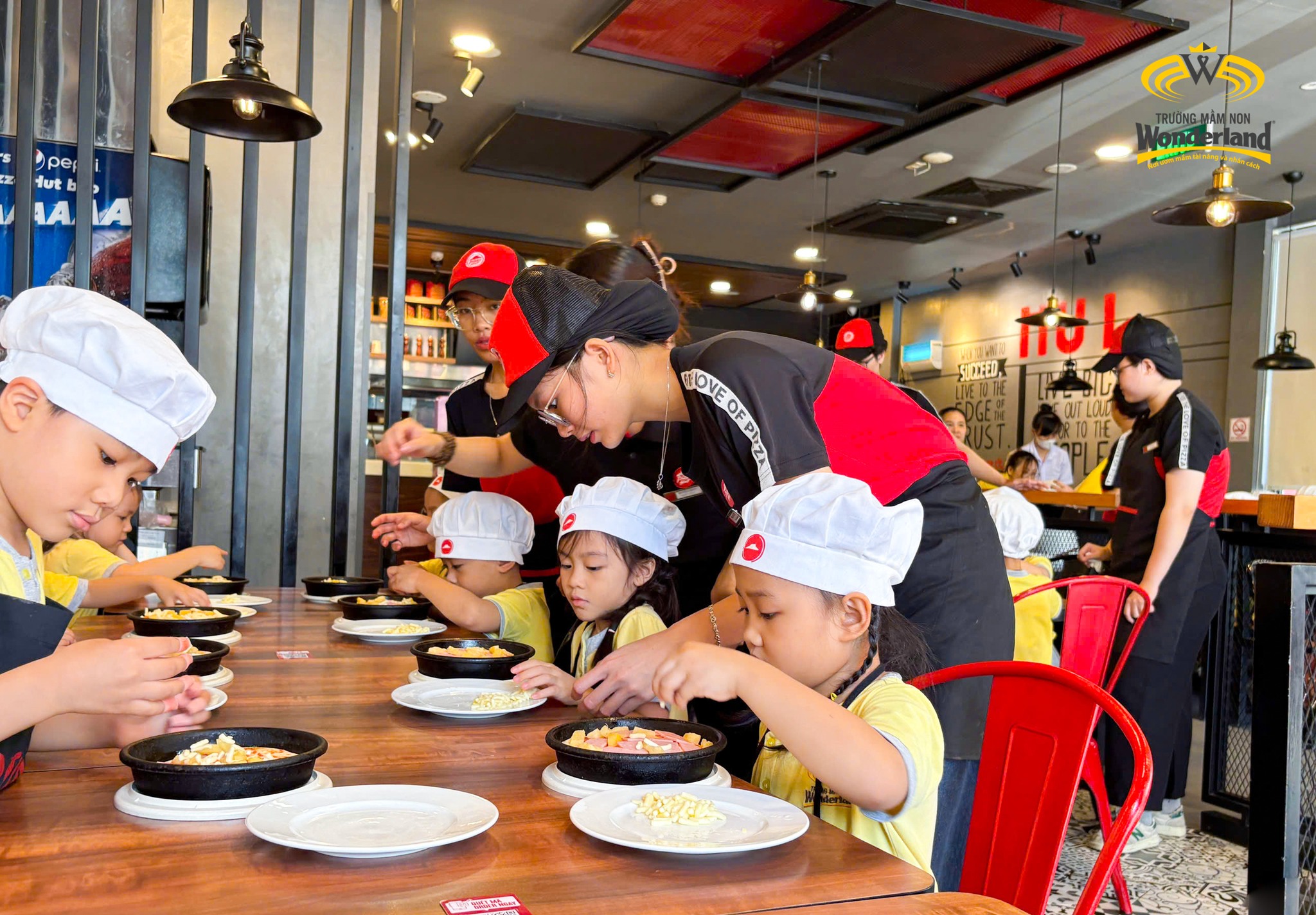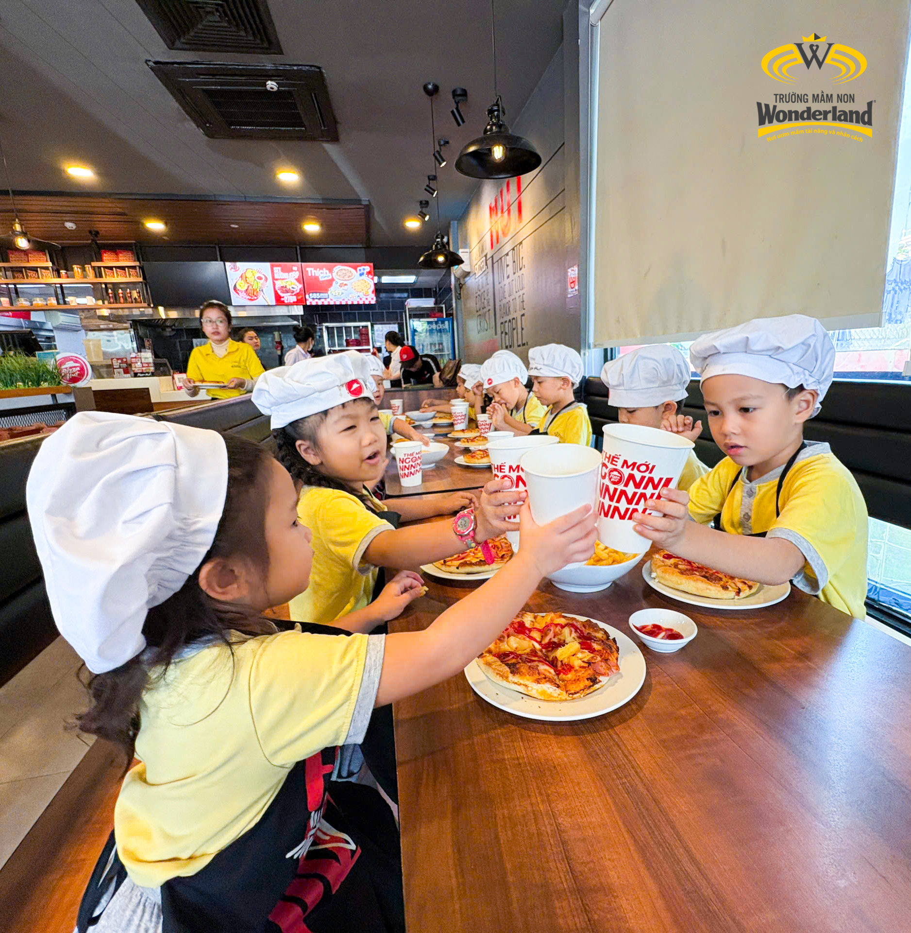 Khởi đầu là trải nghiệm làm bánh Pizza của khối 4-5 tuổi. Các Wonderkids được tự tay nhào bột, phết sốt, thêm nhân, nướng bánh. Bánh pizza vốn là khoái khẩu của các Wonderkids, nay được tự làm, tự thưởng thức những chiếc bánh thơm ngon do chính mình làm ra, niềm vui hiện rõ trên khuôn mặt các bé. Hoạt động giúp các con hiểu được quy trình để làm bánh Pizza, giữ vệ sinh trong quá trình chế biến, giữ kỷ luật trong hoạt động tập thể, sẻ chia nguyên liệu với bạn bè,…
