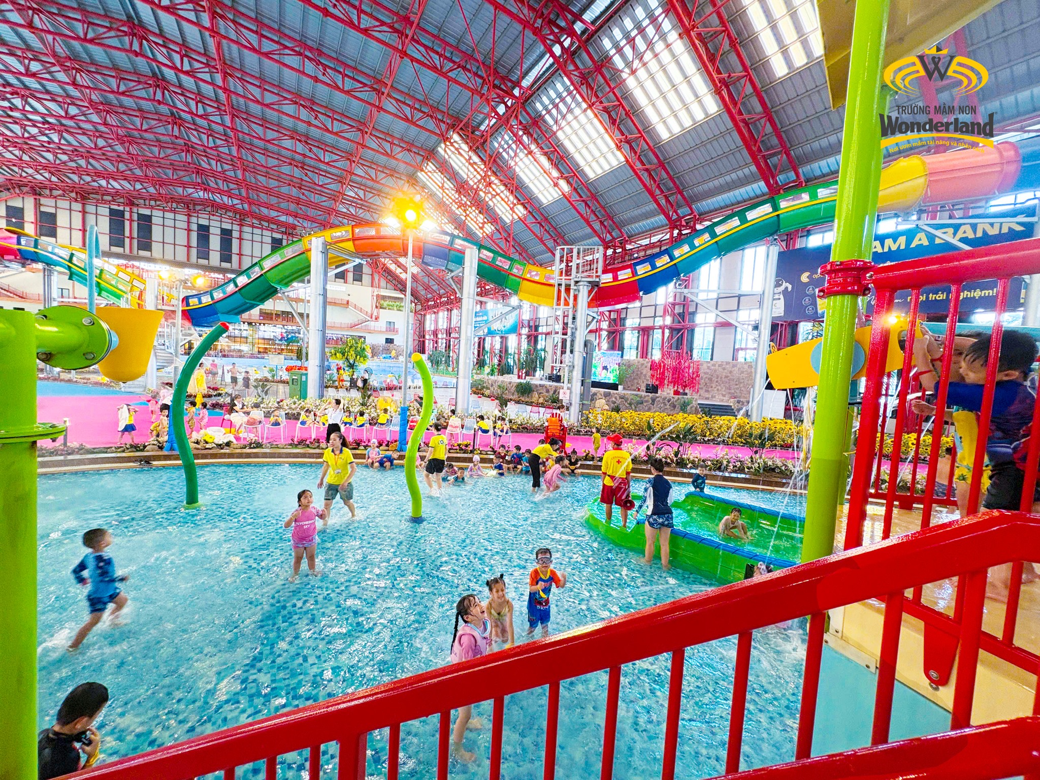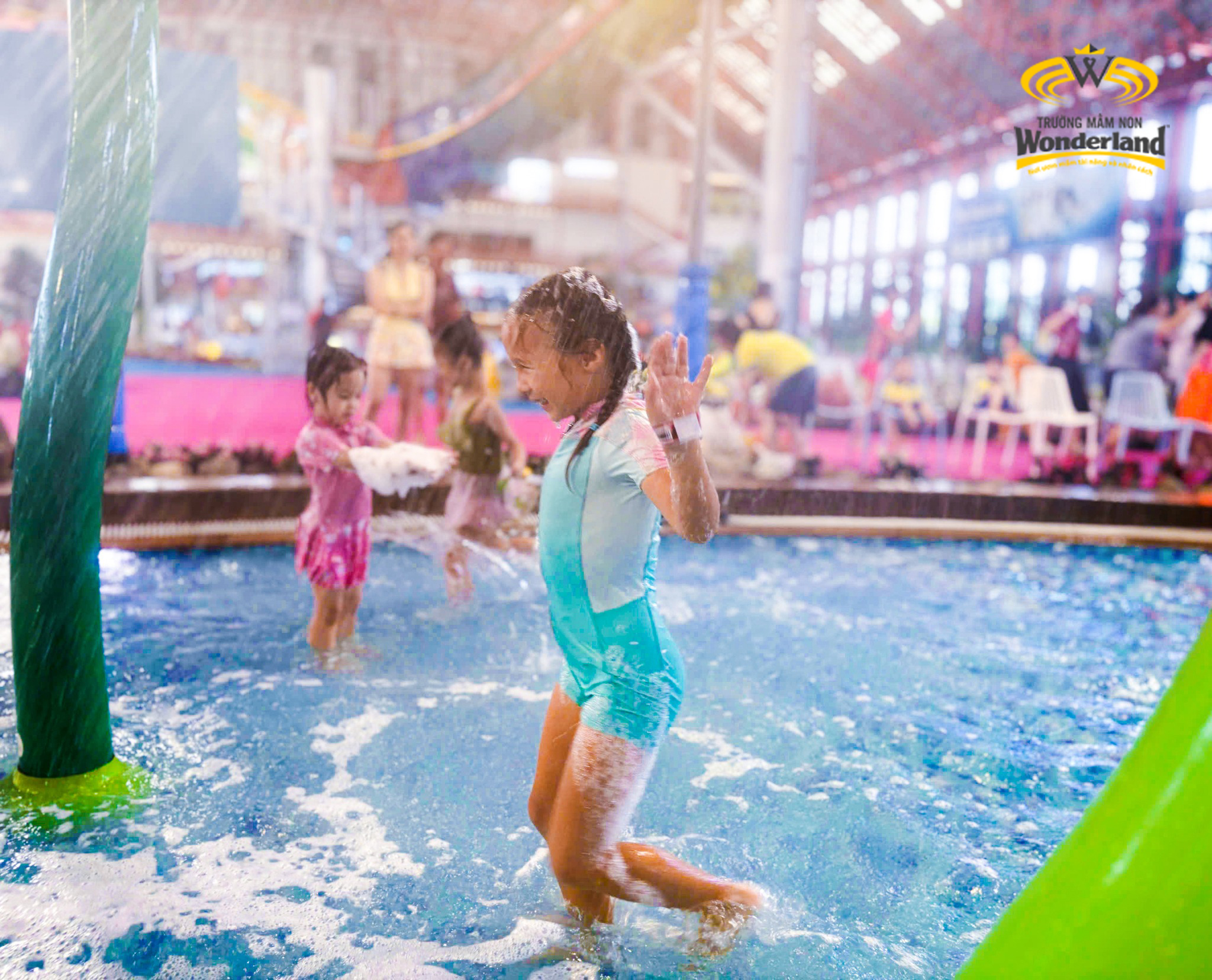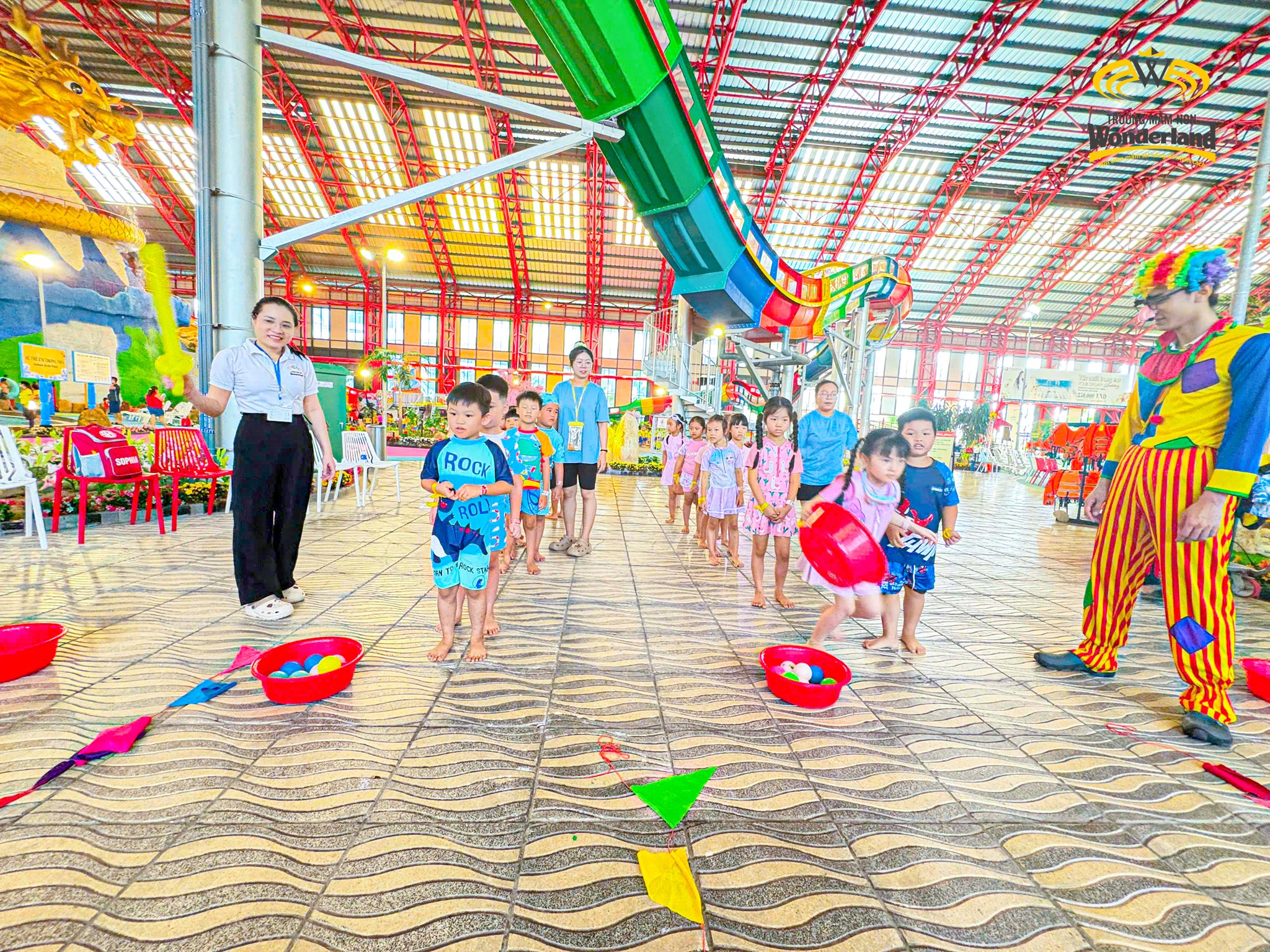 Khác với không gian ấm cúng trong lò nướng bánh, các anh chị khối 5-6 tuổi được trải nghiệm công viên nước phong cách Nhật Bản tại Công viên nước Mikazuki 365. Giữa cái nóng oi bức mùa hè, các Wonderkids được đắm mình trong dòng nước mát lạnh cùng chú hề vui nhộn chơi rất nhiều mini game như: Chuyền bóng, chuyền nước, chơi cùng bọt tuyết,…