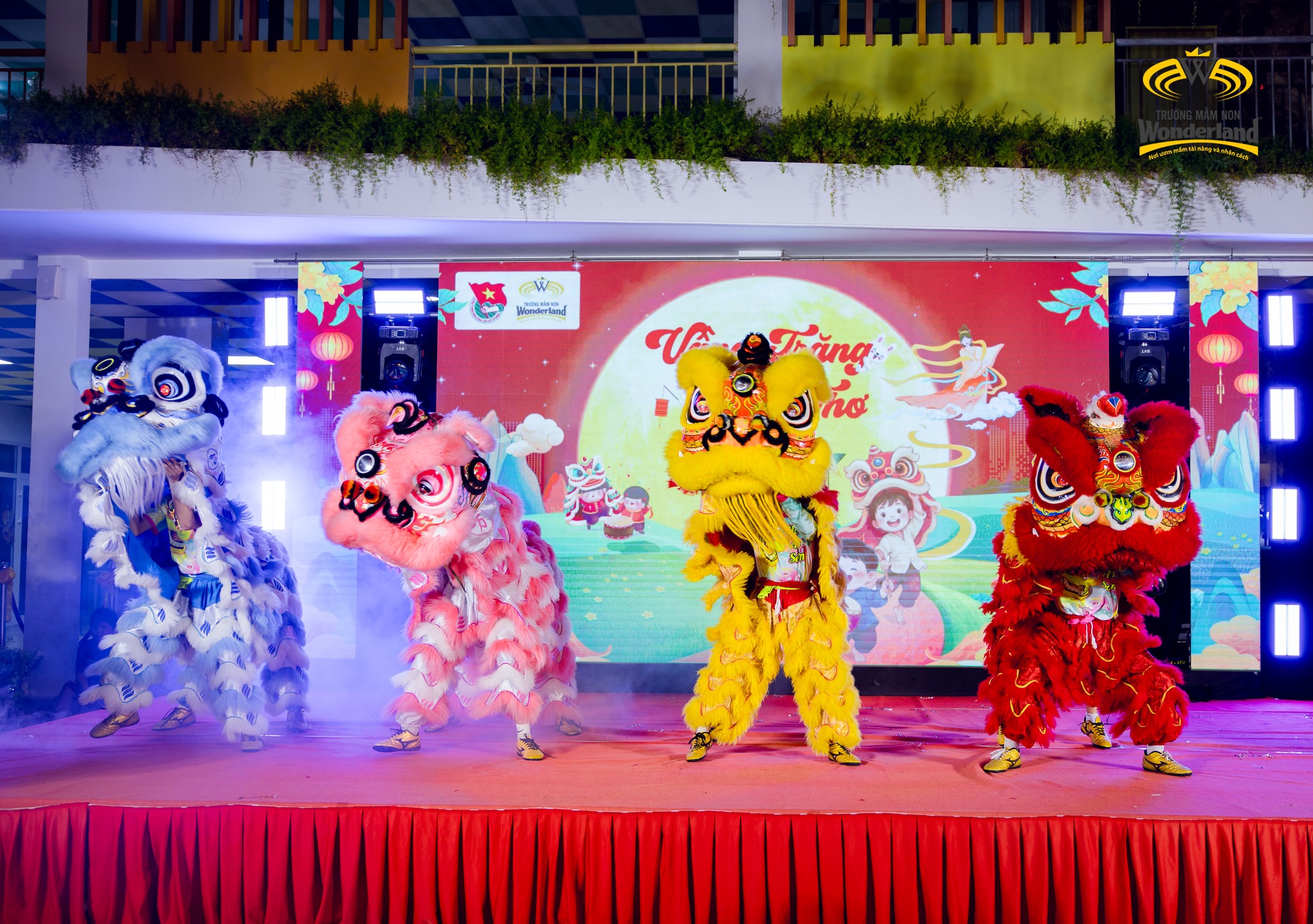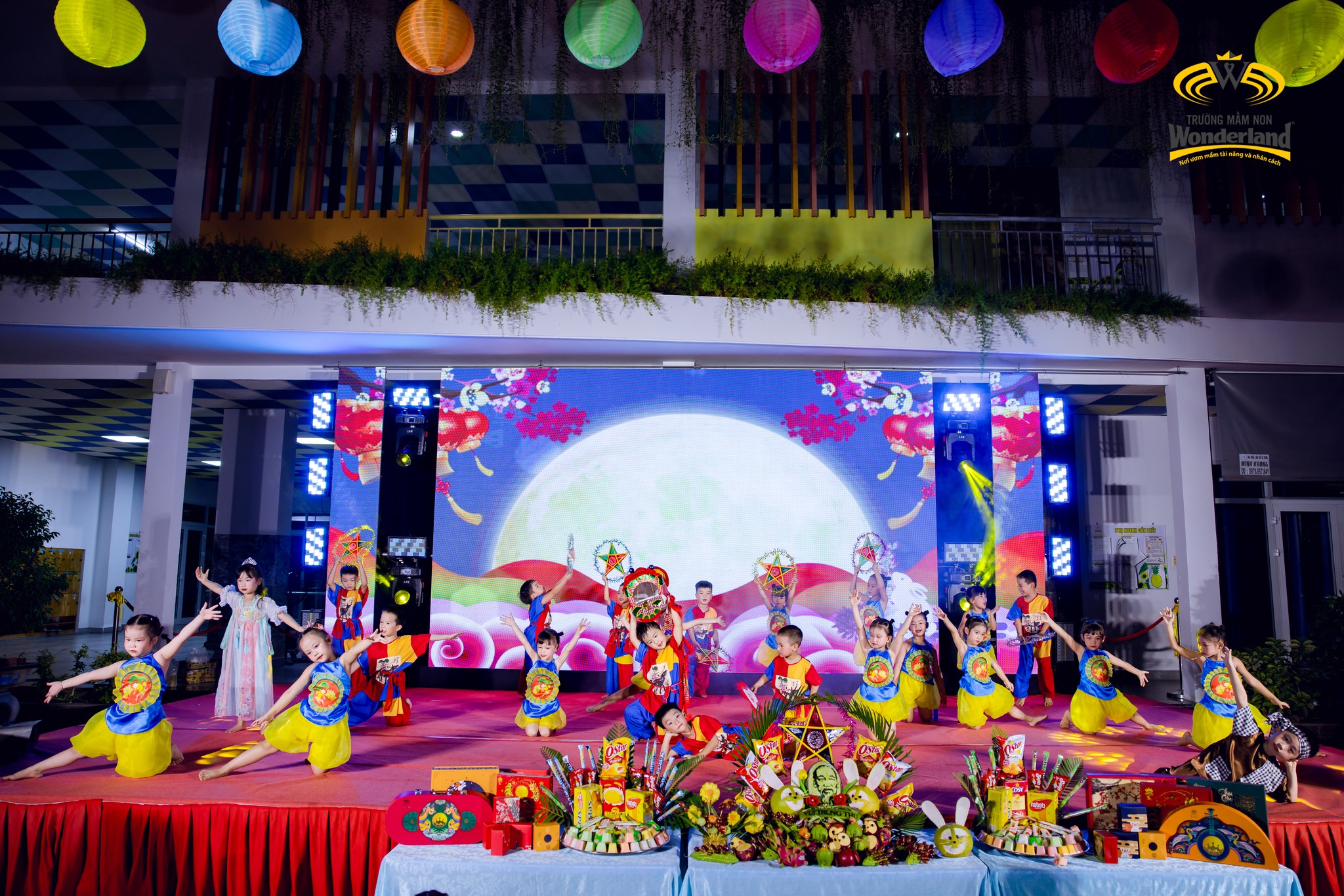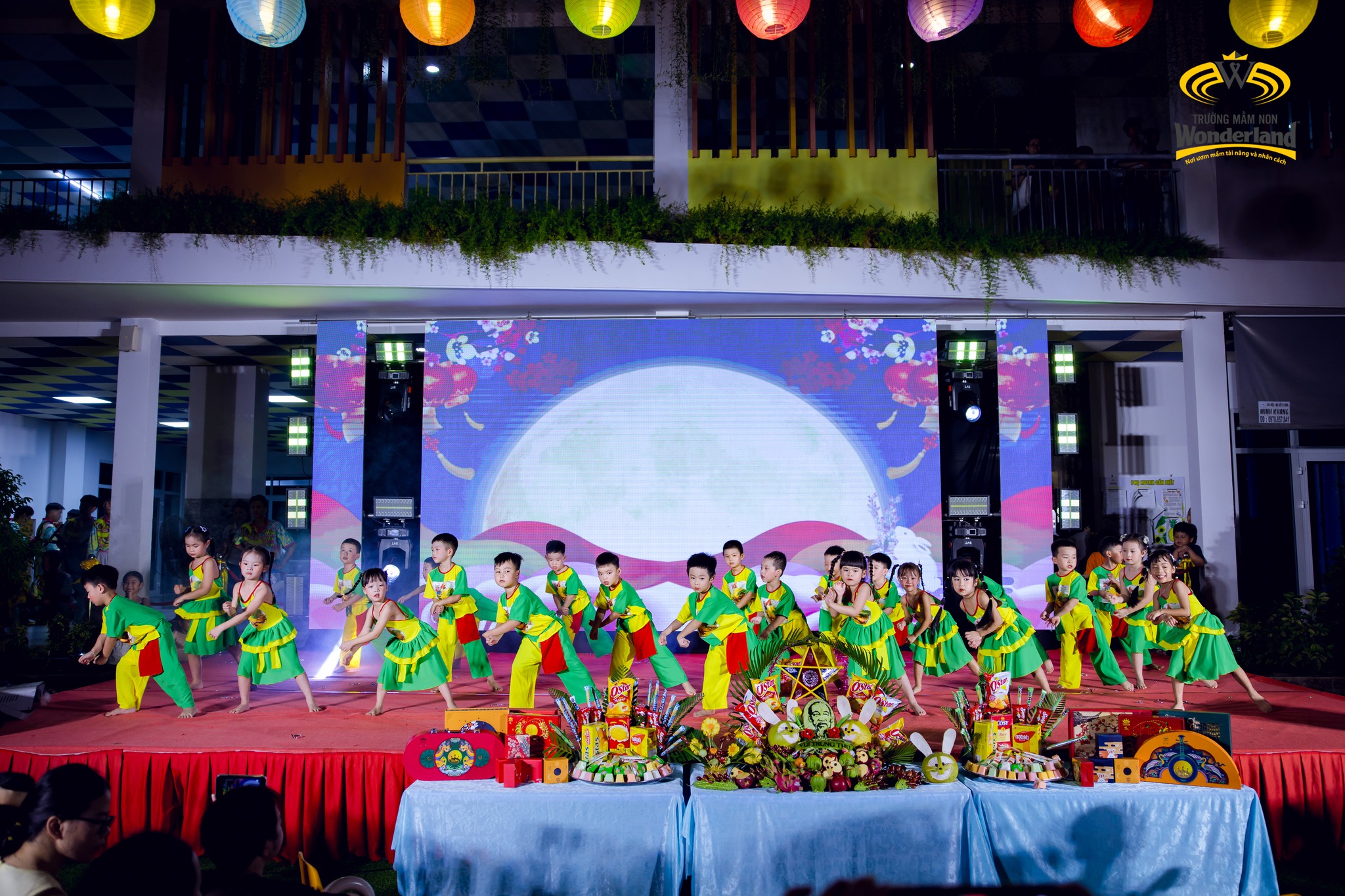 Chương trình diễn ra sôi nổi với các tiết mục văn nghệ đặc sắc, vui tươi của các Wonderkids và màn trình diễn múa lân ấn tượng. Bên cạnh đó, nhà trường còn chuẩn bị mâm cỗ Trung thu rực rỡ, lung linh ánh đèn, góp phần tạo nên bầu không khí đoàn viên, ấm áp.