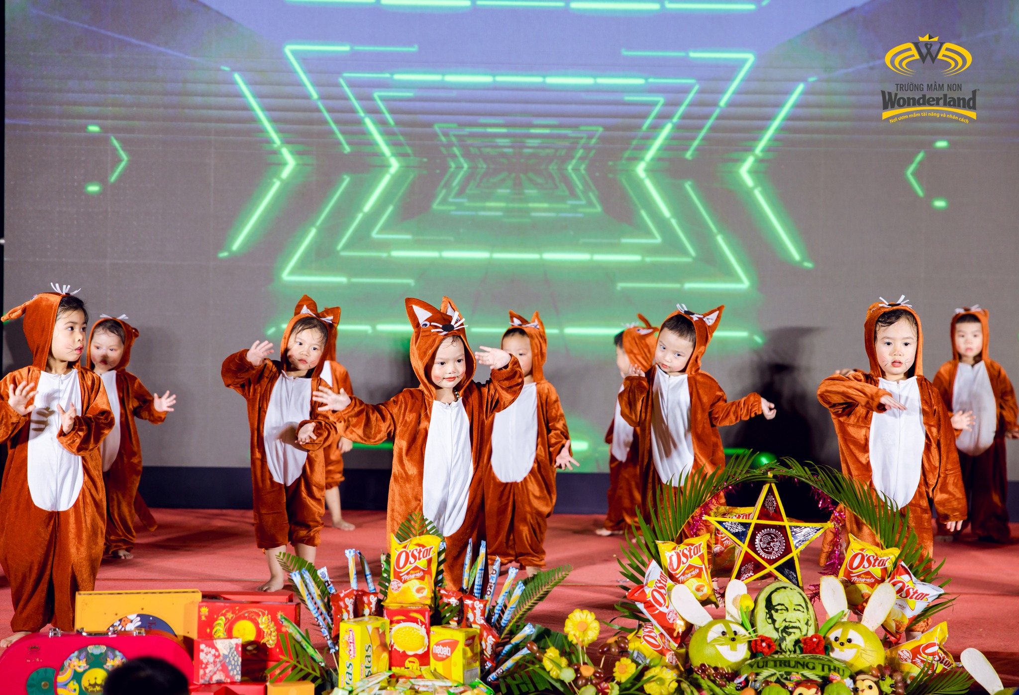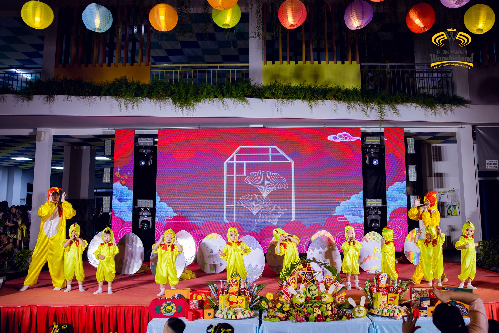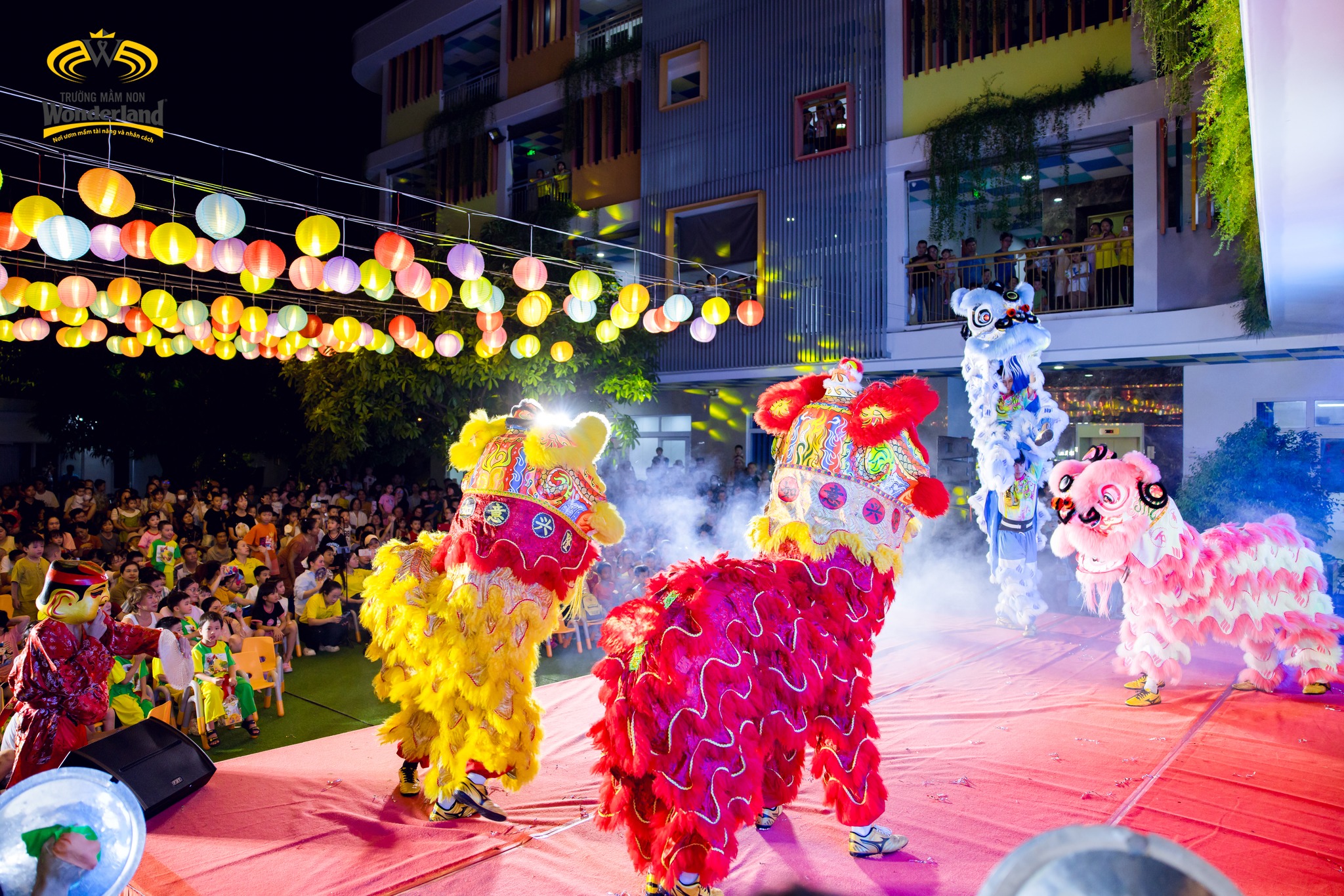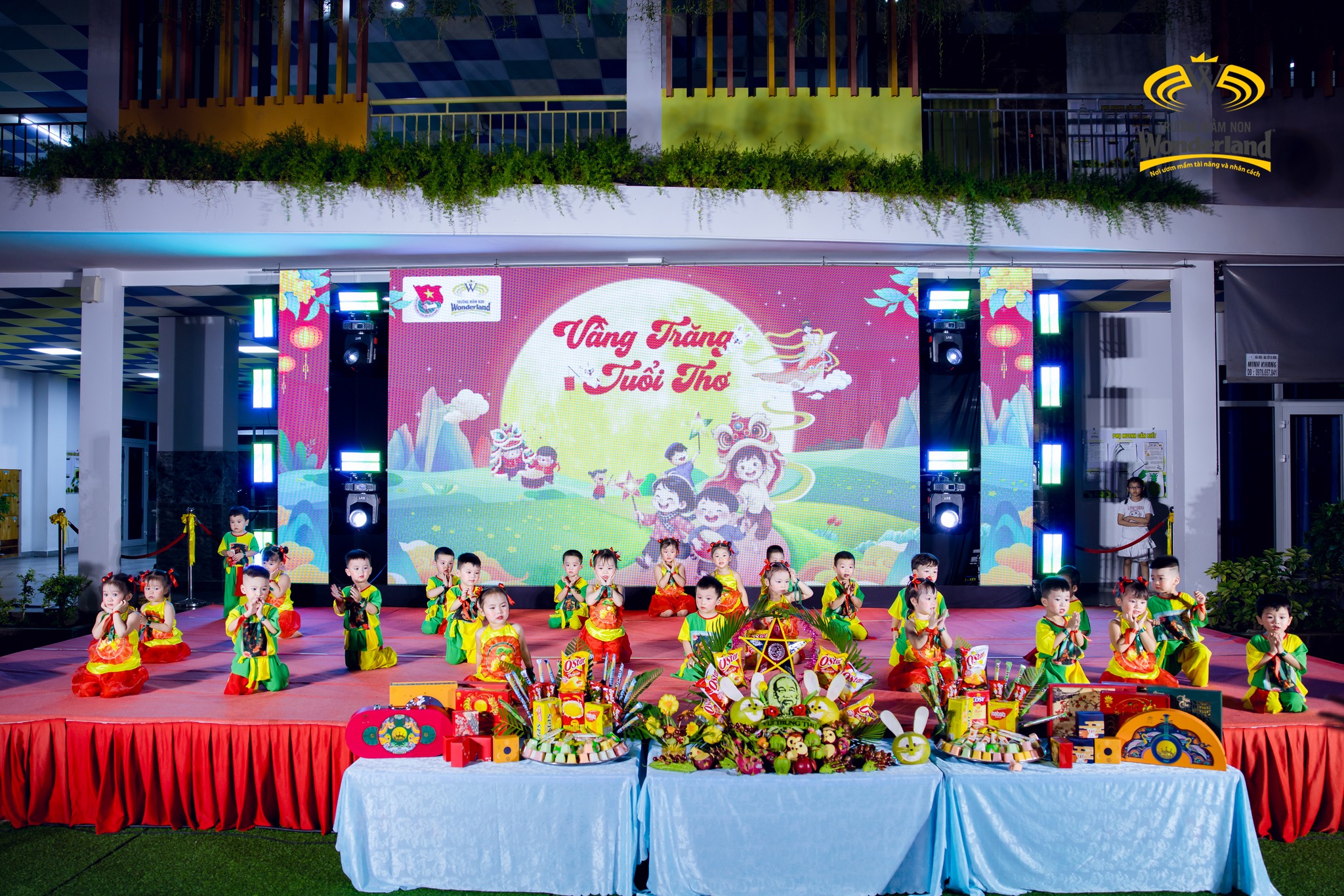 Chương trình diễn ra sôi nổi với các tiết mục văn nghệ đặc sắc, vui tươi của các Wonderkids và màn trình diễn múa lân ấn tượng. Bên cạnh đó, nhà trường còn chuẩn bị mâm cỗ Trung thu rực rỡ, lung linh ánh đèn, góp phần tạo nên bầu không khí đoàn viên, ấm áp.