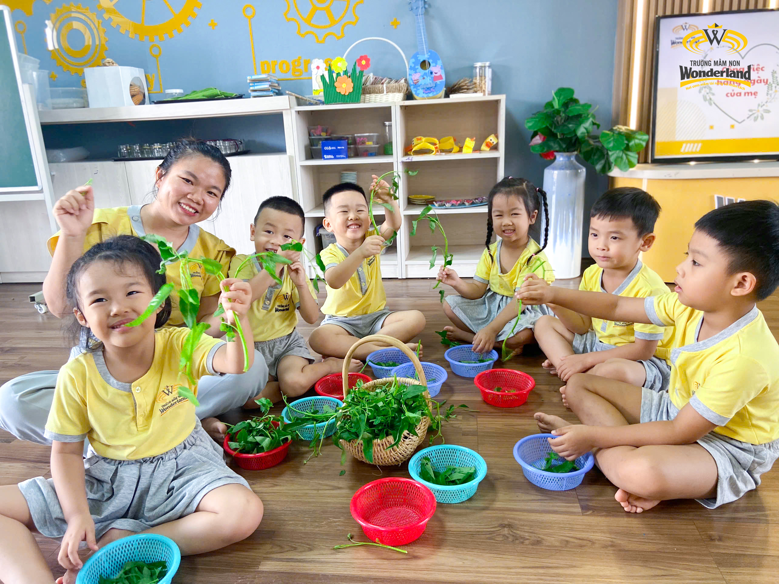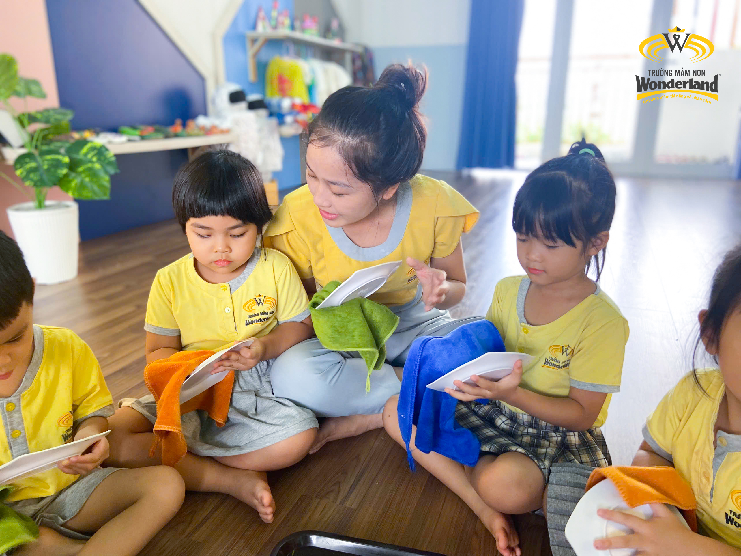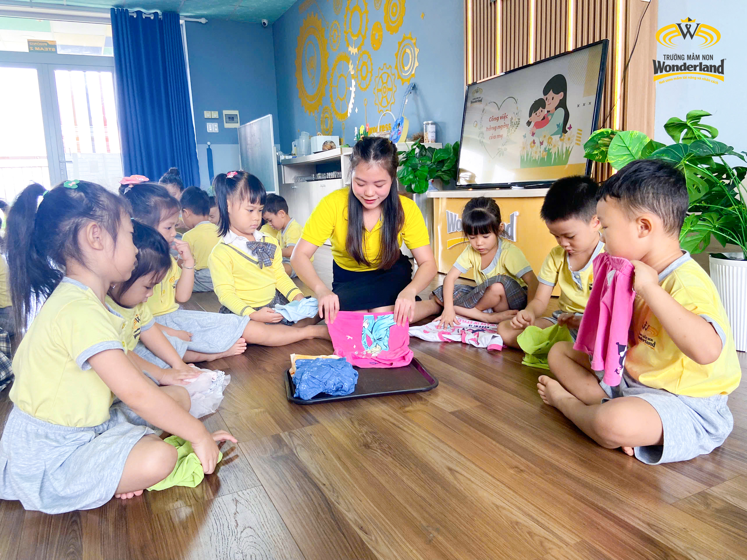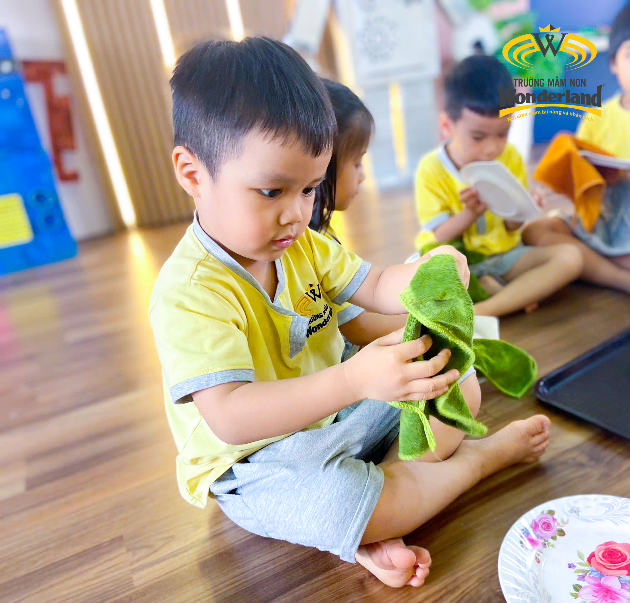 Cuối tiết học, các Wonderkids còn được trổ tài cùng nhau thi các trò chơi: nhặt rau, lau chén đĩa, gấp quần áo,…kết thúc trò chơi, cô giáo đã tìm là được bạn nào nhanh nhẹn, cẩn thận nhất.